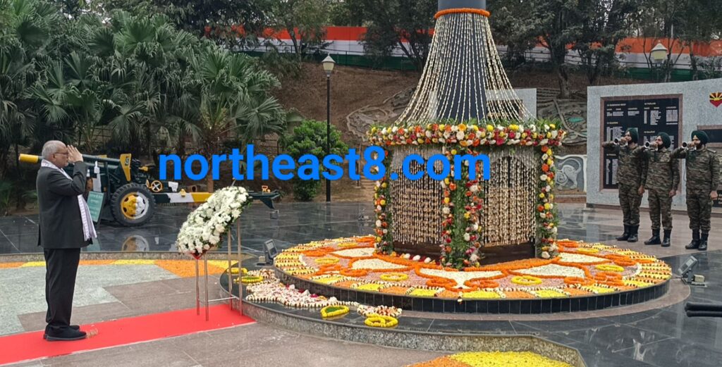 আগরতলা : উপরাষ্ট্রপতি সি পি রাধাকৃষ্ণাণ রবিবার এলবার্ট এক্কা ওয়ার মেমোরিয়াল পার্কে বীর শহীদদের প্রতি শ্রদ্ধা জানান। স্মৃতিস্তম্ভে পুস্পস্তবক অর্পণ করে কিছুক্ষন নিরবতা পালন করে দেশের সার্বভৌমত্ব রক্ষায় নিরাপত্তা বাহিনীর যে সমস্ত আধিকারিক ও জওয়ান প্রাণ বিসর্জন দিয়েছেন তাদের স্মৃতির প্রতি শ্রদ্ধা জানান। উপরাষ্ট্রপতি এলবার্ট এক্কা পার্কের ভিজিটারস বুকেও তাঁর অভিমত লিপিবদ্ধ করেন।উপরাষ্ট্রপতি এলবার্ট এক্কা মেমোরিয়াল পার্কে গিয়ে পৌঁছলে তাঁকে স্বাগত জানান কৃষিমন্ত্রী রতনলাল নাথ, শিল্পমন্ত্রী সান্তনা চাকমা। সেই সময় উপরাষ্ট্রপতির সঙ্গে পার্কে উপস্থিত ছিলেন রাজ্যপাল ইন্দ্রসেনা রেড্ডি নাল্লু , মুখ্যসচিব জে কে সিনহা এবং প্রশাসনের পদস্থ আধিকারিকগণ।