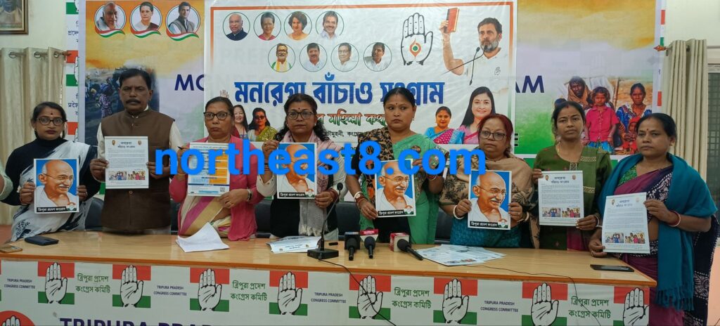 আগরতলা : মনরেগা প্রকল্প রক্ষার দাবিতে “মনরেগা বাঁচাও সংগ্রাম” স্লোগানকে সামনে রেখে সদর মহিলা কংগ্রেসের উদ্যোগে এক সাংবাদিক সম্মেলনের আয়োজন করা হয়। শুক্রবার আগরতলা কংগ্রেস ভবনে এই সাংবাদিক সম্মেলন অনুষ্ঠিত হয়।