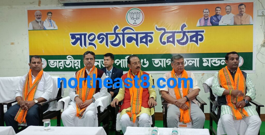 আগরতলা : বৃহস্পতিবার রাজধানীর ভগৎ সিং যুব আবাসে বিজেপি ৬ আগরতলা মণ্ডলের সাংগঠনিক বৈঠক। এই বৈঠকে উপস্থিত ছিলেন রাজ্যের মুখ্যমন্ত্রী ডাক্তার মানিক সাহা, প্রদেশ বিজেপি সভাপতি রাজীব ভট্টাচার্য, বিজেপি নেতা ডাক্তার অশোক সিনহা, বিজেপি সদর জেলা শহরাঞ্চল কমিটির সভাপতি অসীম ভট্টাচার্য, মন্ডল সভাপতি তপন ভট্টাচার্য সহ অন্যান্যরা। বৈঠকে মণ্ডল এলাকার দলীয় নেতা কর্মীদের উপস্থিতি ছিল লক্ষ্যনিয়। বৈঠকে এইদিন সাংগঠনিক বিভিন্ন বিষয় নিয়ে বিস্তারিত আলোচনা হয়। মুখ্যমন্ত্রী বলেন, আগামীর কৌশল ঠিক করার জন্য বৈঠক। সরকারি প্রকল্প গুলি ঘরে ঘরে পৌঁছে দেওয়া। যাতে কোথাও কোন গ্যাপ না থাকে। মানুষকে নিয়ে চলাই মূল লক্ষ্য।